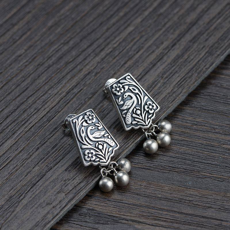 画梦设计师原创S925银复古民族工艺耳饰凤凰花气质简约个性耳钉热门设计联盟服务商