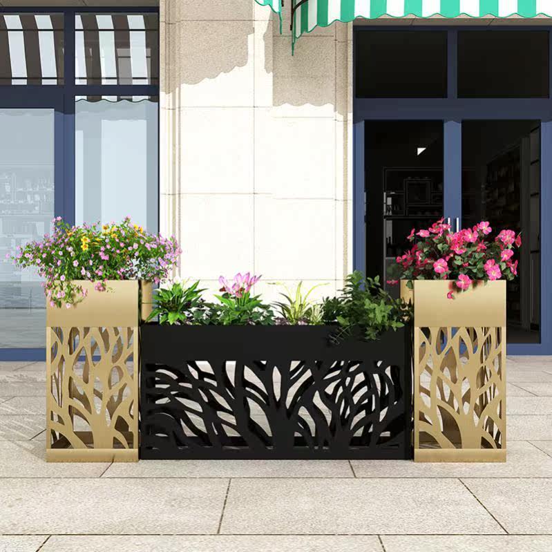 休闲吧组合定制商业门店铁艺围栏花箱花槽餐厅广场板长方形绿植摆热门设计联盟服务商