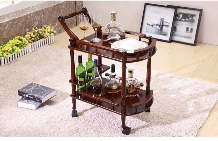 家用白实木三层酒吧餐厅展览车小推车酒水车复古饭店静音茶酒水热门设计联盟服务商