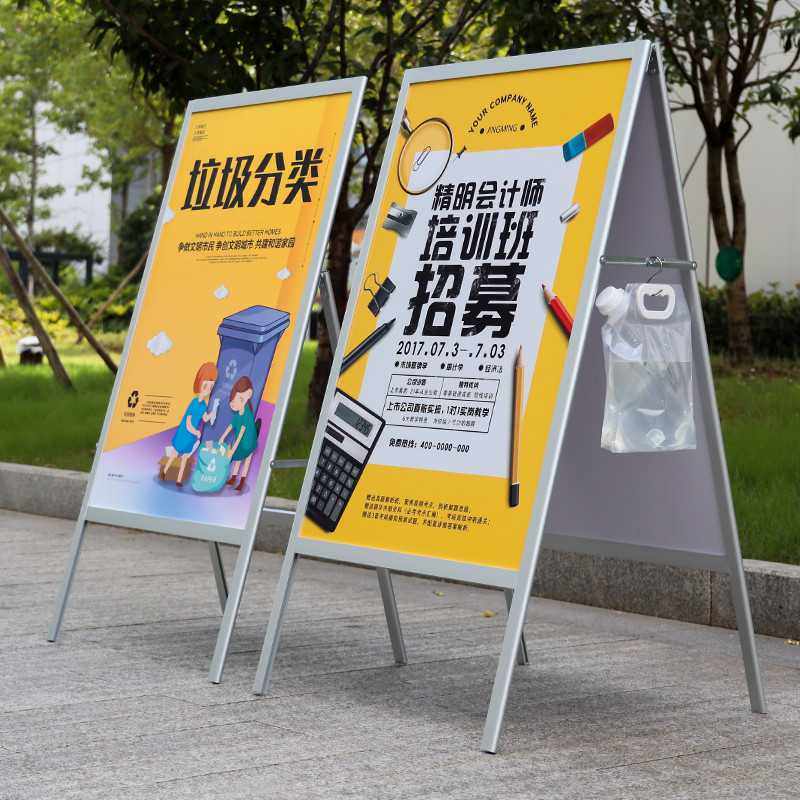 铝合金海报架A型广告牌折叠展架宣传展示架招工大型展板架子。热门设计联盟服务商