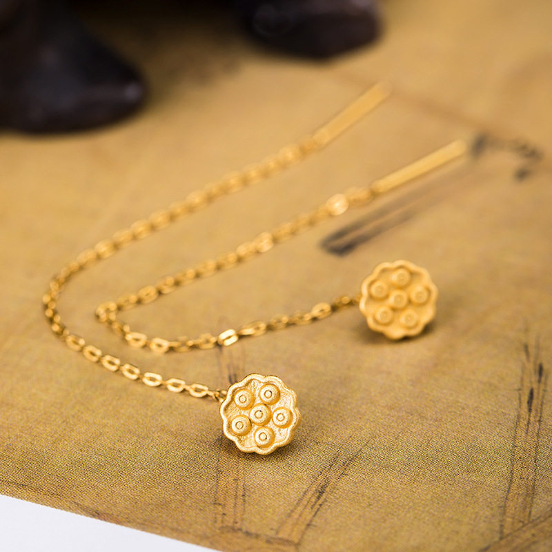 2022新款潮耳环女s925银宫廷复古长款设计莲蓬金色耳坠热门设计联盟服务商
