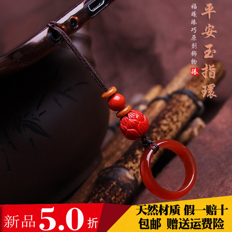 天然朱砂红玛瑙指环手机链平安寓意 钥匙扣U盘手机恳绳男女挂件热门设计联盟服务商